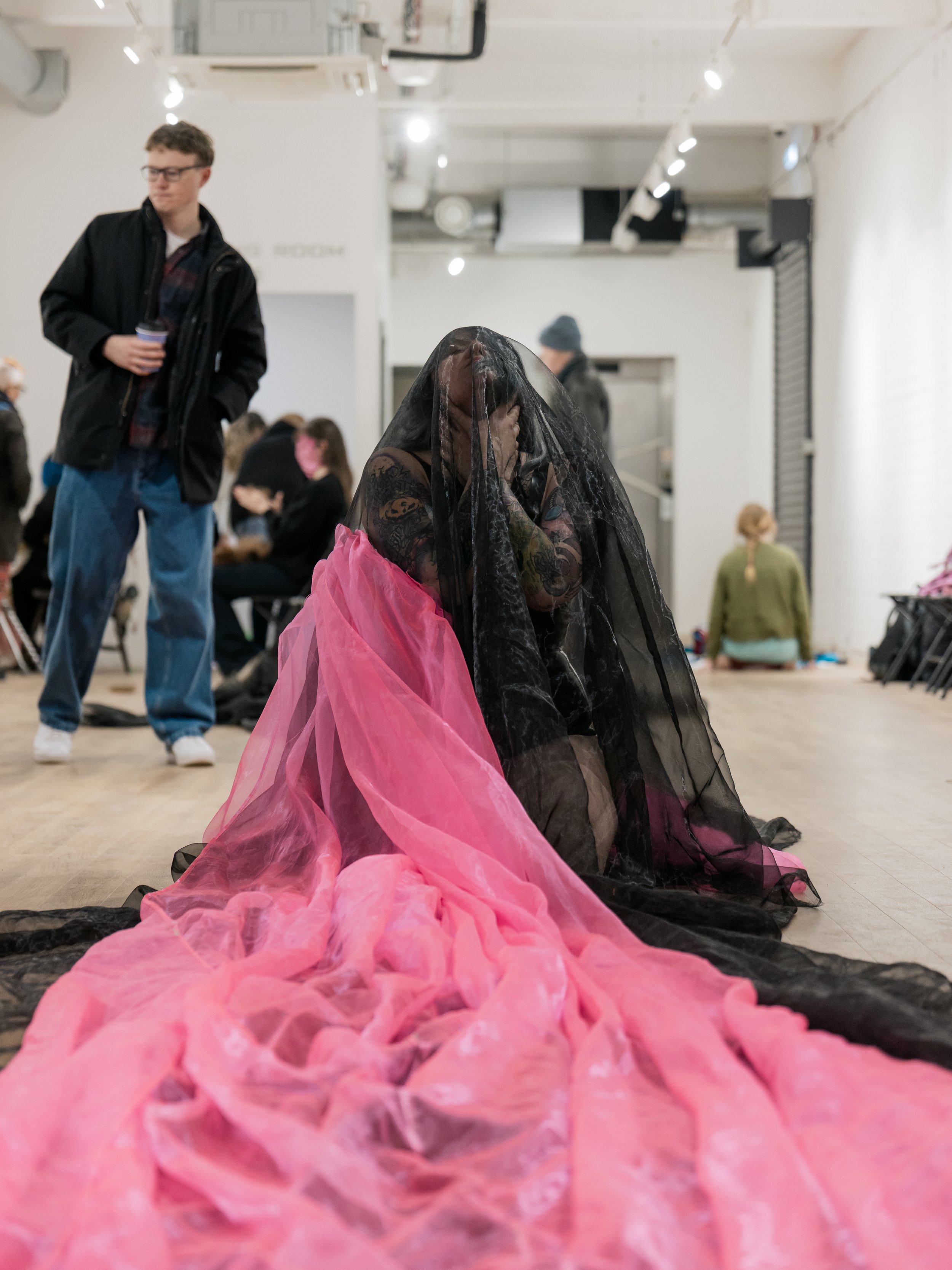 Her work explores states of containment, vulnerability, and transformation, often engaging with repetition, duration, and non-verbal forms of expression. Drawing on influences from ritual, horror cinema, dark humour, and contemporary performance practice, she creates environments that hold discomfort while allowing space for reflection and care. Through these works, she invites audiences into slow, emotionally charged encounters where meaning emerges over time rather than through spectacle.